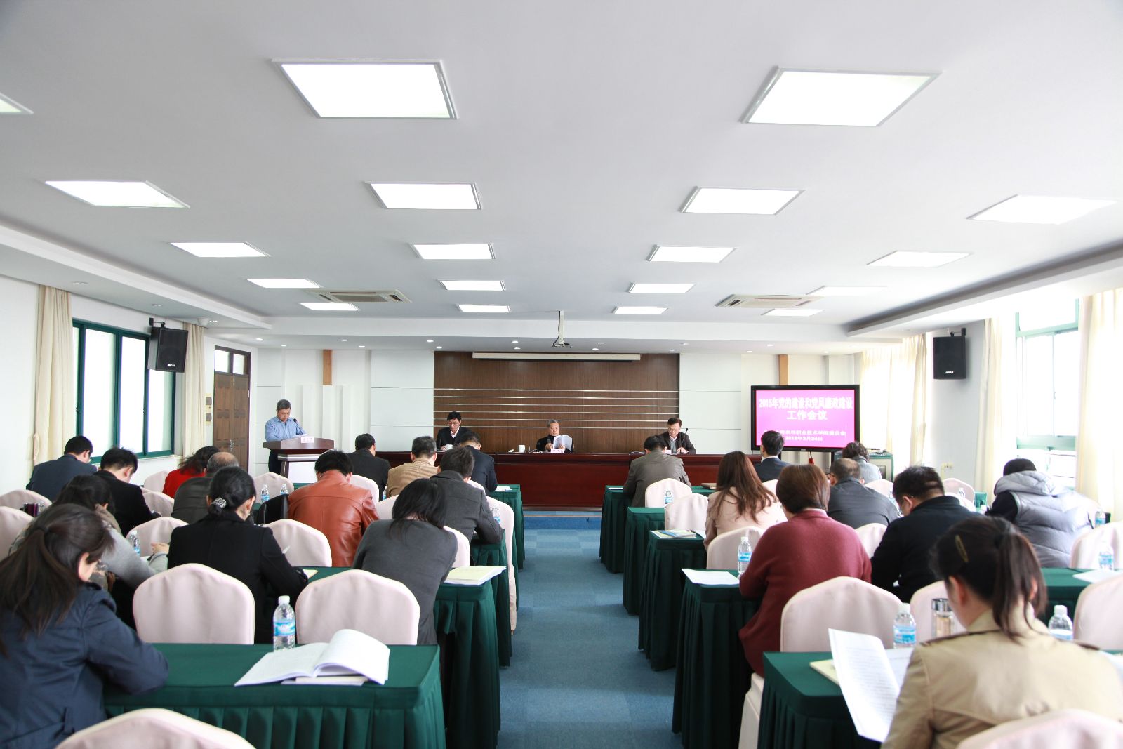 党委副书记、院长魏华向大会作了题为《依法治校深入推进党风廉政建设和反腐败工作》的工作报告,回顾了2014年党风廉政建设和反腐败工作和工作体会,并部署了2015年党风廉政建设和反腐败工作的主要任务:一是加强党的纪律建设,严明政治纪律和政治规矩;二是深入落实“两个责任”,强化责任追究;三是严格贯彻落实中央八项规定精神,驰而不息纠正“四风”;四是加大查信办案力度,严肃查处违法违纪行为;五是落实监督责任,建设忠诚、干净、担当的纪检监察干部队伍。