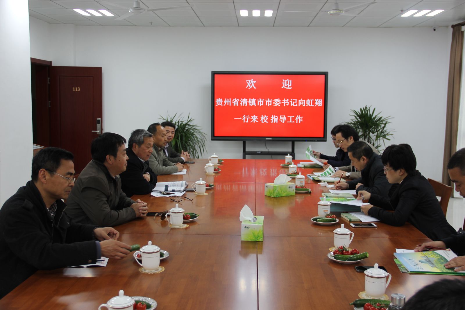 4月13日,贵州省清镇市党委书记向虹翔一行7人来校考察学院在农业职业院校建设方面好的经验和做法。我院党委书记吴乃山、副院长谢锦平、市农校副校长王军亮出席座谈会,相关部门负责人参与了交流互动。