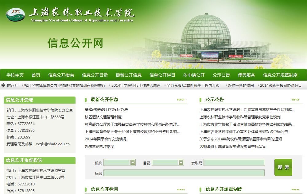 前不久我院在上海市高校信息公开评议中获高职高专院校第一名,这是市教委首次委托第三方社会机构开展信息公开评议,评议过程和结果更为公正公开,成绩的取得对全院信息公开工作人员是最大的鼓励和肯定。
