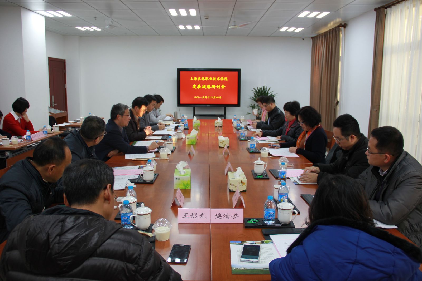 12月4日,学院在五厍实训基地召开发展战略研讨会。市教委发展规划处李蔚、龚晋,高等教育处赵坚,市农委社会协调发展处金英、科技处钟绍萍、综合发展处包代红,学院党政班子领导出席研讨会。党委书记吴乃山主持会议。