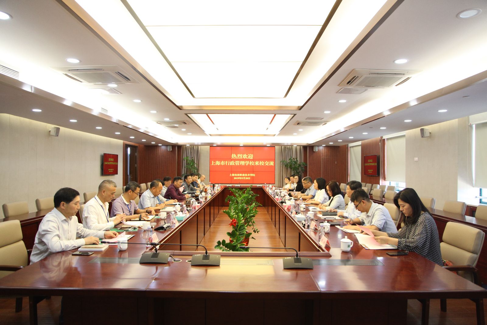 5月28日,上海市行政管理学校校长仲肇森,校党总支书记张慧红、副书记邹建文,副校长李钰等一行10人来访我校考察交流,两校召开座谈会。党委书记蔡红,党委副书记、院长魏华,副院长张佳敏、谢锦平,副院长、实训基地主任王军亮出席,相关系部及部门负责人参加会议。会议由蔡红书记主持。