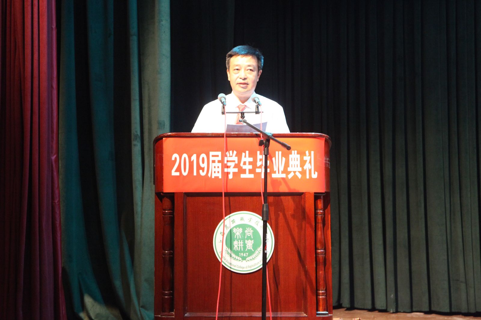 毕业典礼在庄严的国歌中拉开序幕。党委副书记、院长魏华致辞,他说,同学们经过3年的学习,收获了专业的知识与技能,拓展了视野,增长了才干,强健了体魄,磨砺了意志和品格。毕业后,很多同学会从事“三农”事业,希望大家始终铭记“尚农乐耕 生生不息”的校训,发扬潜心贯注、精益求精、守正创新的工匠精神,传承尚农文化,勉励同学们,无论身处何方,保留一颗爱农村、爱农民的心,真正成为一名“一懂两爱”的三农人才。同时他寄望同学们不忘初心,用理想逐梦新时代;脚踏实地,用奋斗筑梦新时代;开拓创新,用卓越圆梦新时代;勇于担当,用才智共创新时代。