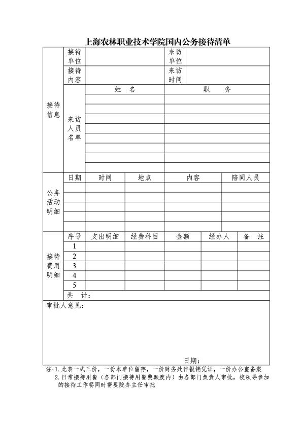 上海农林职业技术学院国内公务接待清单