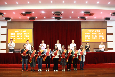随后举行颁奖仪式。魏东霞、张琰、郑江平老师分别代表优秀教学质量奖、优秀辅导员(班主任)以及“四有”好老师分享了在提高教学质量、做好学生工作、以及担当教书育人职责等方面的所做所思所悟。郑江平老师带领24名新进教职工进行了入职宣誓。