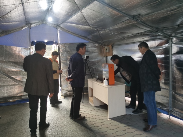 1月20日,党委书记蔡红、院长魏华、副院长费国强同志检查学校疫情防控工作情况,党办院办主任费明、后勤处处长李卫明陪同检查。