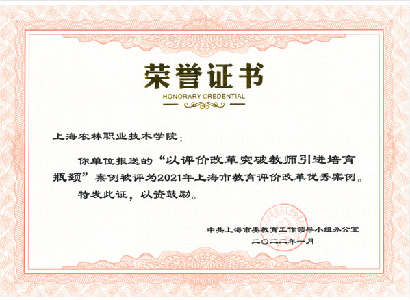 近日,从中共上海市委教育工作领导小组办公室获悉,学校报送的《以评价改革突破教师引进培育瓶颈》案例,被评为2021年上海市教育评价改革优秀案例。