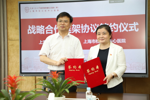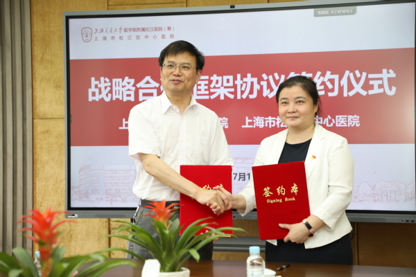 7月15日,学院与松江区中心医院战略合作框架协议签约仪式在松江区中心医院行政楼举行。学院党委书记蔡红、副院长张江,松江区中心医院党委书记徐萍、副院长朱涛出席。