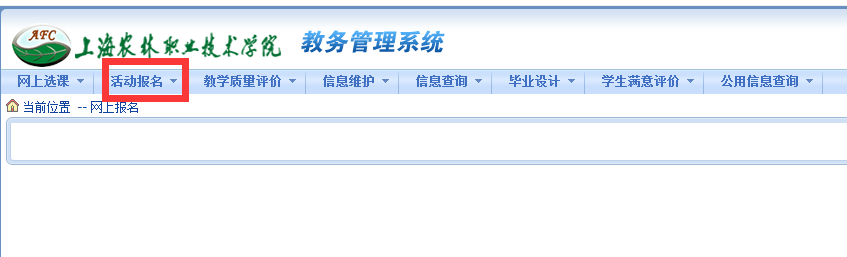 (4)鼠标指向“活动报名”点击“网上报名”,然后进入报名界面。