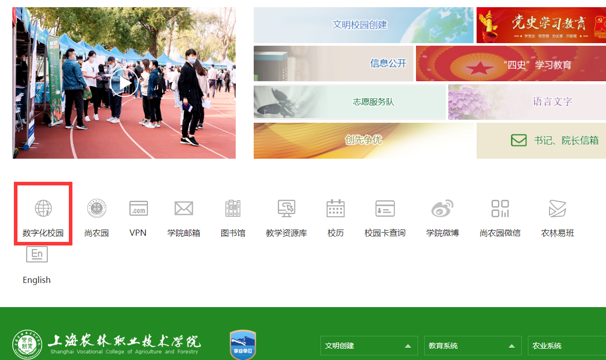 1)进入上海农林职业技术学院网站http://www.shafc.edu.cn。