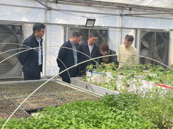 上海惠和种业有限公司总务部经理查晴晴、科技培训部姚奕君,学院植科系、党办院办、后勤处相关人员参加调研。