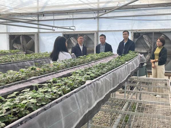 蔡红一行在郏惠彪的陪同下参观了组培室、草莓育苗大棚、作物种植大棚以及种子生产车间,实地了解育种、制种、推广一体化的生产过程。