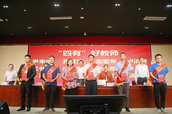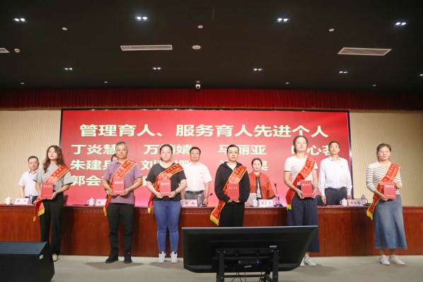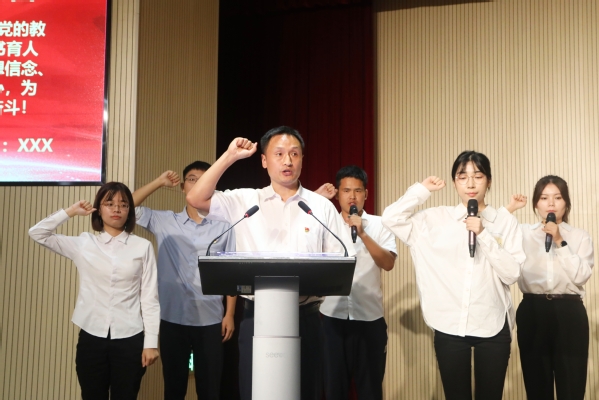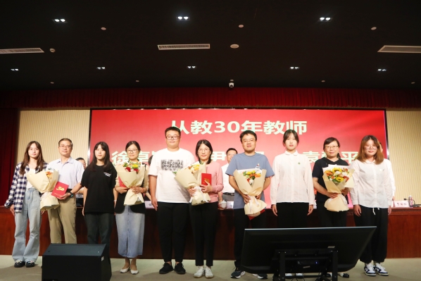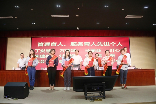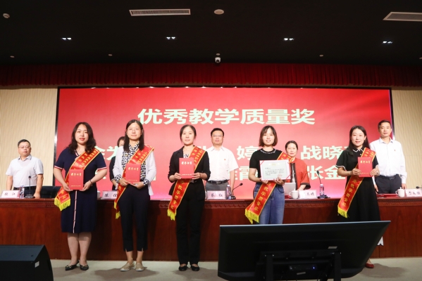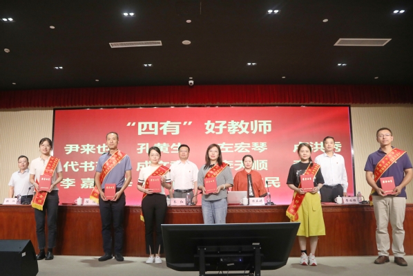 随后举行颁奖仪式。战晓燕、蔡新元、孔德颖、范小雪老师分别代表优秀教学质量奖、“四有”好教师、优秀辅导员以及优秀共产党员分享了做好教学工作、践行“四有”好教师、学生工作以及党务工作等方面的心得和体会。卢洪秀老师带领新进教职工进行了入职宣誓。