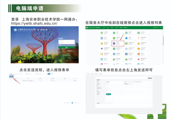 在线报修平台界面直观、简单易用,广大师生可在电脑端和移动端进行报修申请,具体操作步骤如下: