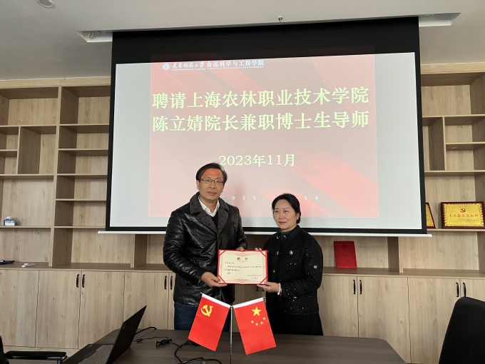 陈立婧院长现为上海市水产学会、动物学会、生态学会会员,国际生态经济协会会员,《高校生物学教学研究(电子版)》编委,上海现代农业职业教育集团理事长。此次受聘为天津科技大学食品科学与工程学院兼职博士生导师,她表示将以学科发展为引领,面向生物和食品产业发展前沿,结合科研与职教,希望能培养出产、学、研一体化,满足当今中国社会快速发展需求的高素质的人才。