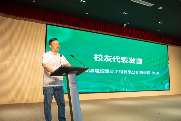 上海宸瀛建设景观工程有限公司总经理、学校94级农经专业校友张涛代表校友作了发言,表达了对母校的感恩之情。他说,能在学校举办教育发展基金会揭牌仪式之际回到母校,心情非常激动,看到母校发展越来越好,倍感自豪,自己所办公司能有今天的发展,主要得益于母校的支持,并表示今后将不遗余力支持母校发展和建设。