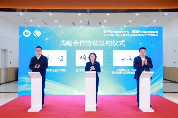 上海农林职业技术学院与松江区泖港镇、临港智汇园三方合作签约。