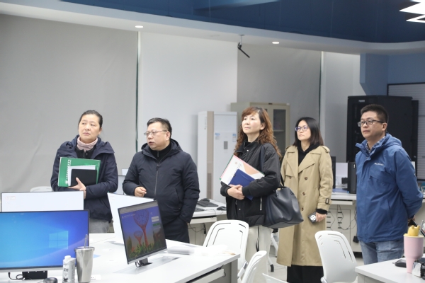 会后,邵金敏一行在张江的陪同下参观了虚拟仿真实训室、花艺实训中心、校史馆、融媒体技术实训室。
